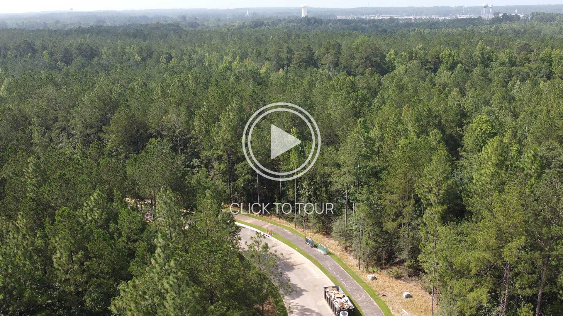 Lot 1 Lot 14 Lot 15 Lot 13 Lot 12 Lot 11 Lot 10 Lot 9 Lot 8 Lot 7 Lot 6 Lot 5 Lot 4 Lot 3 Lot 2 SOLD Aerial view of a wooded area with winding roads, a small body of water near houses, and a construction site surrounded by dense forest. Residential neighborhood is visible in the upper right.